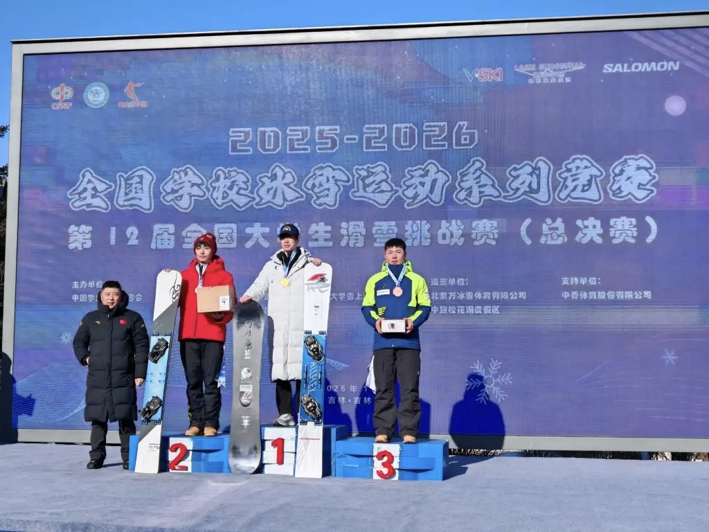 2022级冰雪专业学子包家满获得男子单板平行大回转项目季军。