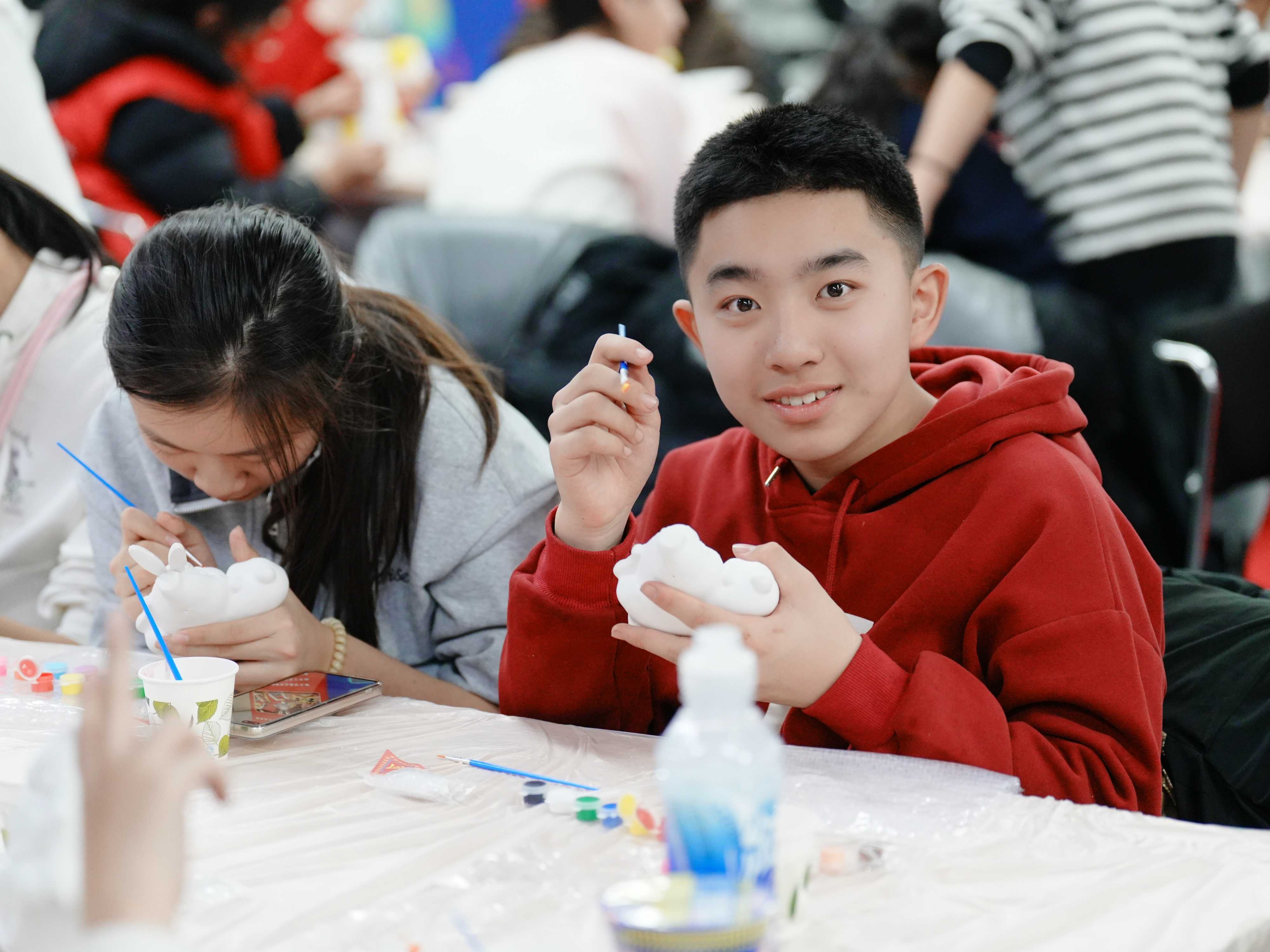 上午,师生团队奔赴北京市地标建筑——天坛祈年殿,开启主题录制工作。同学们精神饱满,共同演绎《我和我的祖国》经典曲目,深情朗诵《彩色的中国》,清澈的歌声与铿锵的诵读声回荡在古殿之间,抒发出对祖国的热爱与赞美。午后,同学们抵达北京欢乐谷,开启沉浸式自主娱乐时光。晚课期间,基地教师还为同学们安排了非遗传统手工文化体验活动,既有北京兔爷的彩绘创作,也有吹糖人的实操课程。同学们全情投入、受益匪浅,在动手实践中沉浸式感受老北京的独特文化底蕴。