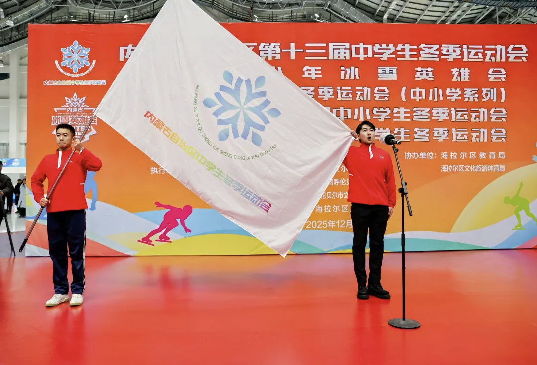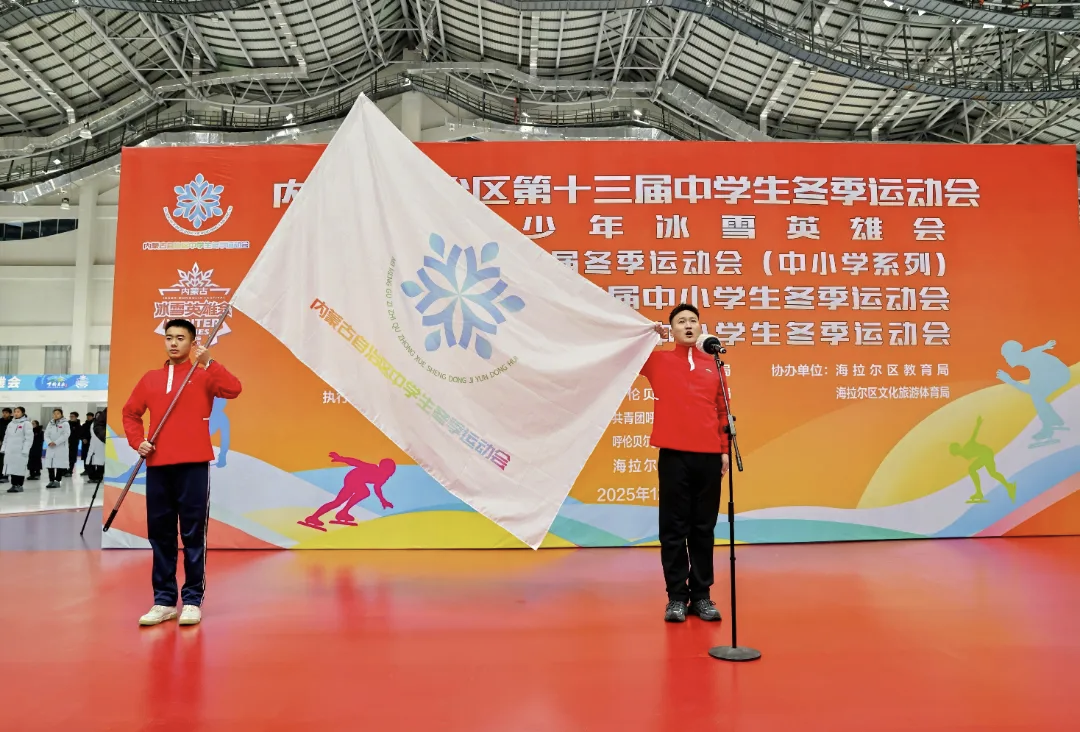 12月20日,2025年内蒙古自治区第十三届中学生冬季运动会在呼伦贝尔市海拉尔区开幕。自治区教育厅党组成员、副厅长朱宝江致开幕词并宣布开幕,呼伦贝尔市政府党组成员、副市长文进磊致欢迎词。开幕式由呼伦贝尔市教育局党组书记、局长杨忠镇主持。