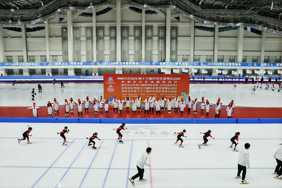 本届运动会延续自治区、市、区三级赛事联动机制,与呼伦贝尔市第十三届中小学生冬季运动会、海拉尔区第二十二届中小学生冬季运动会同期举办,值得一提的是,此次运动会开幕式首次在内蒙古冰上运动训练中心速滑馆举行,是我区历届中学生冬季运动会中规模最大、标准最高的一届,涵盖范围更广、参与热情更高。赛事设置速度滑冰、越野滑雪和冰雪综合三大类项目,分为高中男子组、高中女子组、初中男子组、初中女子组四个组别,共有近千名师生参与赛事活动。