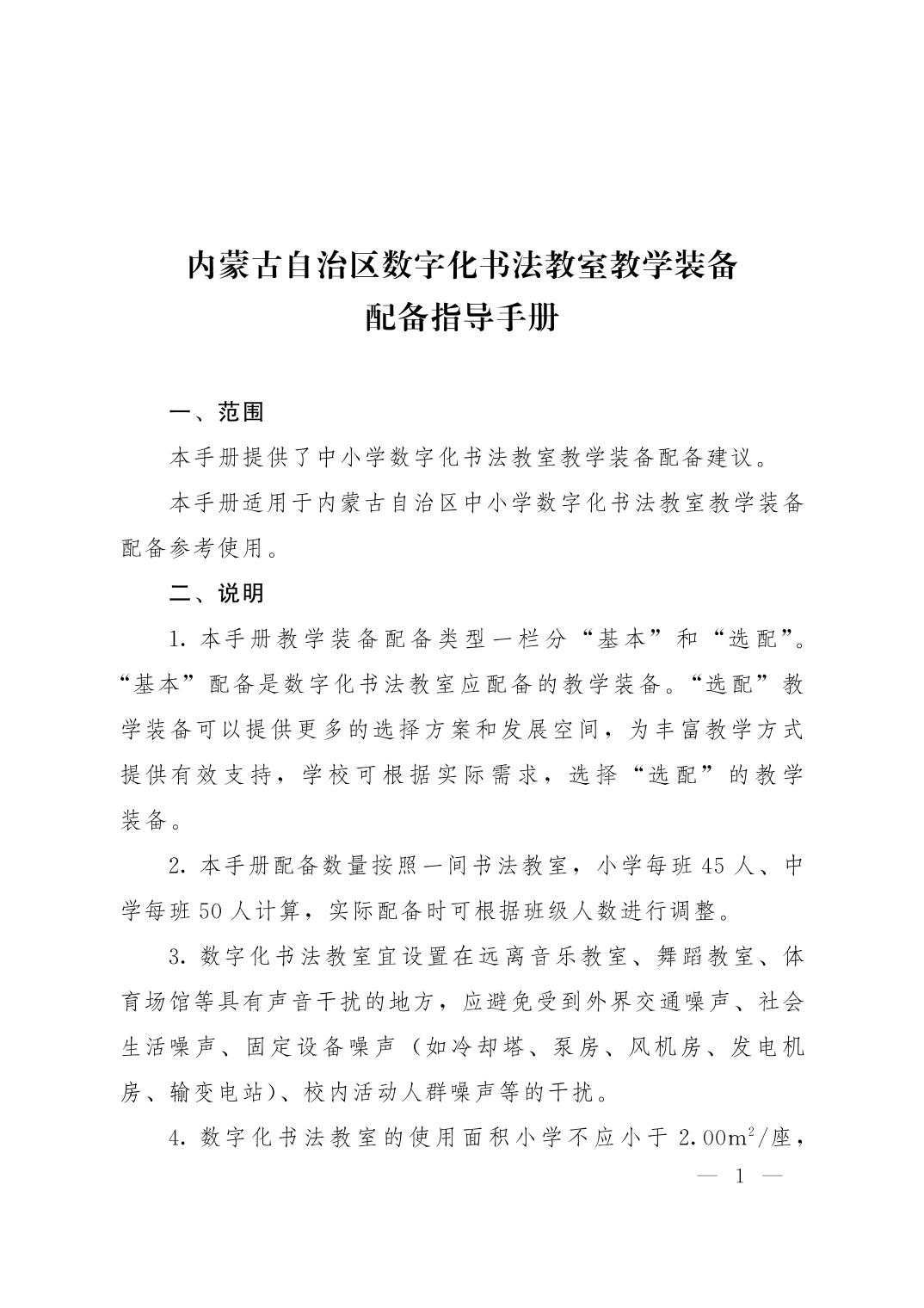内蒙古自治区数字化书法教室教学装备配备指导手册