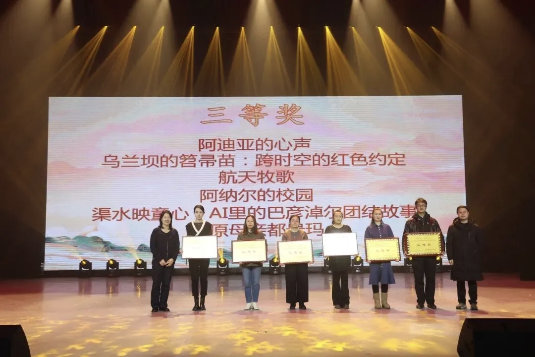三等奖作品(6部):《阿迪亚的心声》《乌兰坝的笤帚苗:跨时空的红色约定》《航天牧歌》《阿纳尔的校园》《渠水映童心:AI里的巴彦淖尔团结故事》《草原母亲都贵玛》。