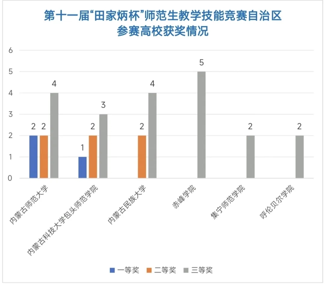 日前,第十一届“田家炳杯”全国师范院校师范生教学技能竞赛决赛落幕。本届比赛吸引了全国289所师范院校的2345名选手参赛,经过初赛和决赛的激烈角逐,我区6所院校38名参赛选手获奖,其中内蒙古师范大学郭欣、王晓辉荣获物理学组、化学组一等奖,内蒙古科技大学包头师范学院李硕获物理学组一等奖。内蒙古师范大学获奖总数居自治区参赛院校第一位。