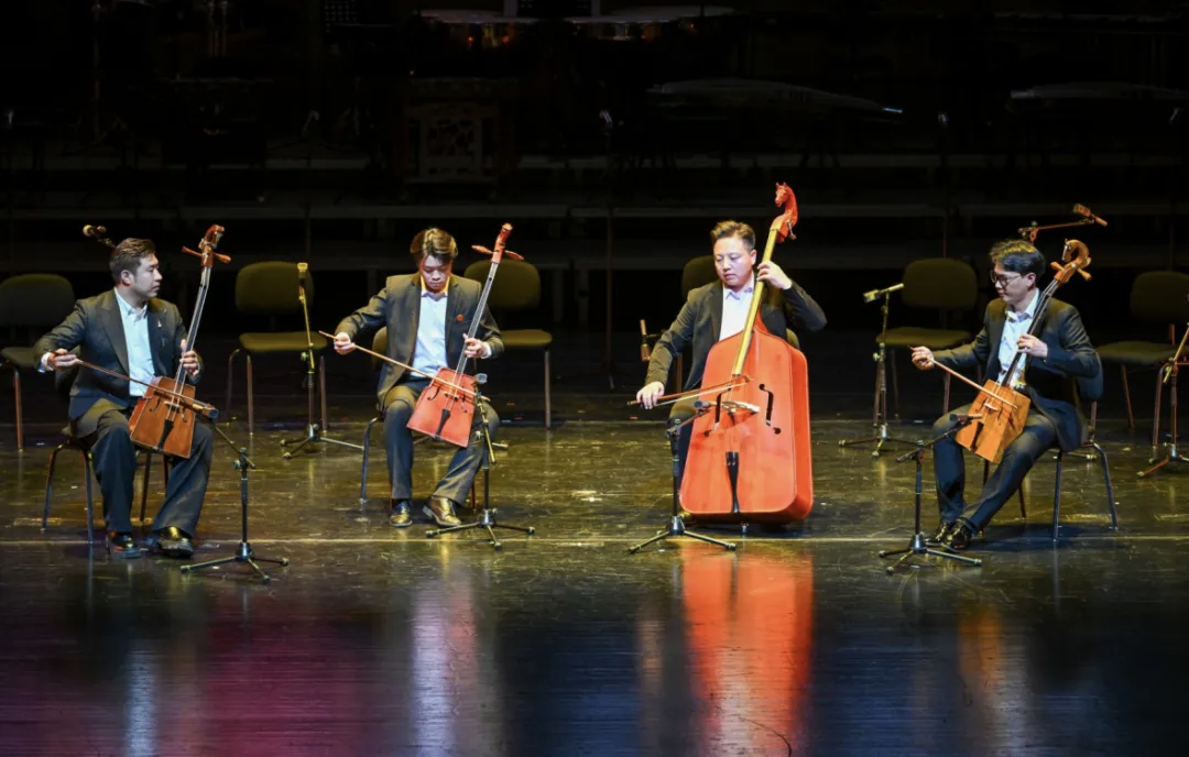 音乐会在潮尔道《美好时光》中拉开帷幕,四胡与乐队《牧马青年》作为核心曲目,由学校青年四胡演奏家改编演绎,四胡主奏高亢明亮,与马头琴、扬琴声部交织,生动刻画牧马青年驰骋身姿,将“蒙古马精神”的坚韧奔放诠释得淋漓尽致,实现了传统民乐的创造性转化。